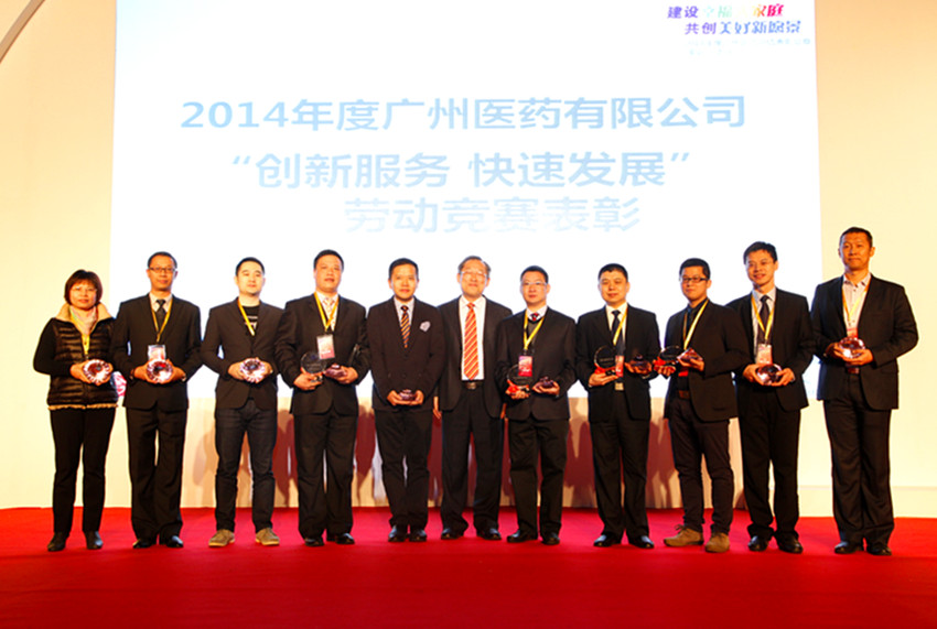 大會(huì)表彰了2014年勞動(dòng)競(jìng)賽獲獎(jiǎng)單位。成員企業(yè)廣州國(guó)盈醫(yī)藥有限公司等10家企業(yè)榮獲“年度優(yōu)勝企業(yè)”獎(jiǎng);廣東省梅縣醫(yī)藥有限公司等5家“雙達(dá)標(biāo)”單位被評(píng)為“年度杰出企業(yè)”;廣州醫(yī)藥本部等7家企業(yè)獲評(píng)“年度創(chuàng)新服務(wù)獎(jiǎng)”。